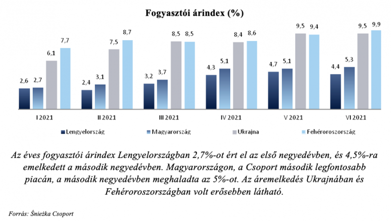 A pandémia előtti év, 2019 első félévéhez képest a Śnieżka Csoport jobb értékesítési eredményeket ért el Lengyelországban és Ukrajnában. A bevételnövekedést segítette, hogy e piacokon a felhasználók a prémium termékeket részesítették előnyben, ugyanakkor negatív hatást jelentett a hrivnya árfolyamának gyengülése, ami rontotta az Ukrajnában elért és złotyra átszámolt bevételek értékét. Alacsonyabb volt viszont az értékesítés Magyarországon és Fehéroroszországban. A magyar piac esetében ennek oka a Poli-Farbe kereskedelmi hálózatának átszervezése, a kínált termékek portfóliójának nagymértékű módosítása és a dekorációs termékek eladási volumenének az egész magyar piacon tapasztalt csökkenése.