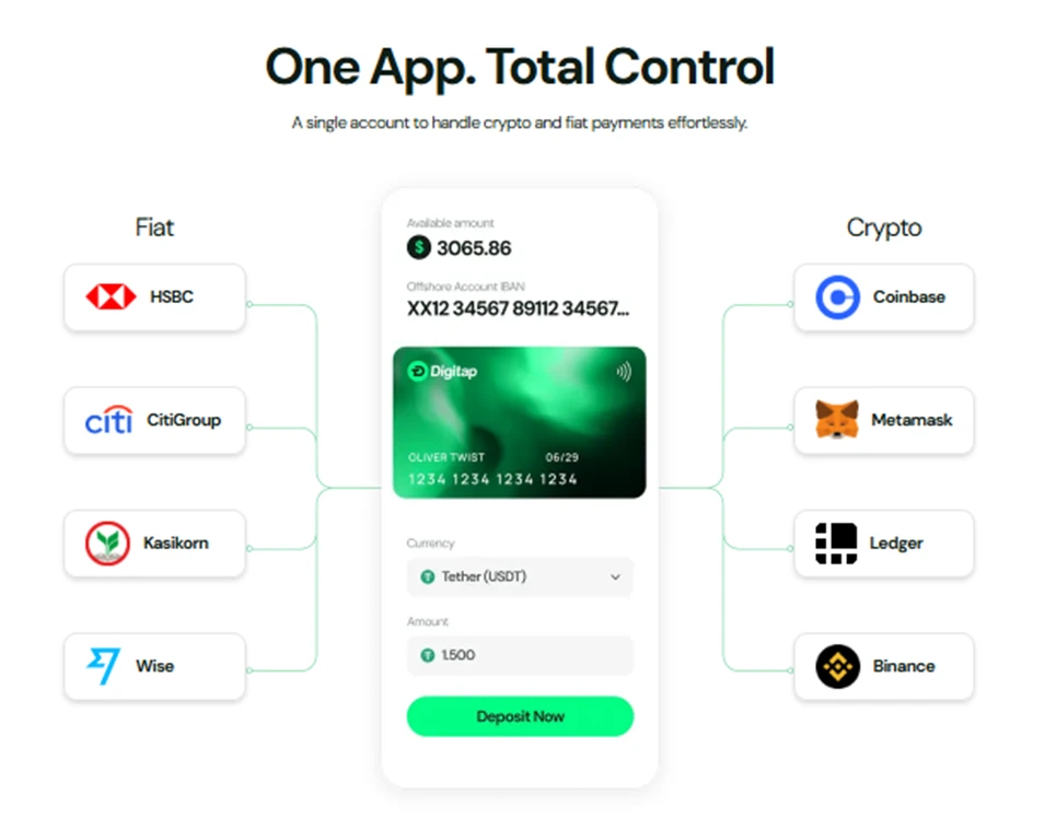 A legtöbb korai szakaszban lévő projekttel ellentétben a Digitap nem csupán egy ötlet – ez egy működő ökoszisztéma. A Digitap Global Money App már elérhető asztali gépre, az Apple App Store-ban és a Google Play Áruházban, lehetőséget biztosítva a felhasználóknak, hogy fiat és kriptovalutát utaljanak, fogadjanak, váltsanak, nemzetközileg fizessenek, sőt, akár offshore bankszámlát is nyissanak – mindezt egyetlen felületen.