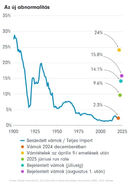A középtávú kilátásokat ugyanakkor egyre inkább meghatározza a lopakodó globális fragmentáció. A világkereskedelem több évtizedes integrációja után a regionális blokkok térnyerése és a geopolitikai széttagolódás strukturális fordulatot jelez. Donald Trump által meghirdetett „felszabadulás napja” – mely mára a kereskedelempolitika egyik meghatározó fordulópontjává vált – tovább gyorsította ezt a folyamatot.