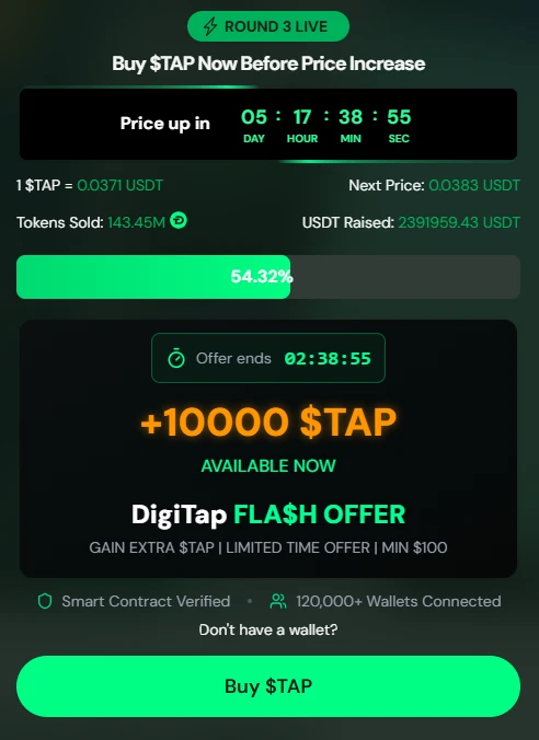 A kriptós előértékesítés szárnyal, miközben a $TAP mélyen diszkontált áron forog