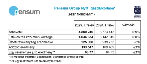 A munkaerő-kölcsönzés terén meghatározó pozíciójú Pensum Group a 2025 első félévében tovább romló gazdasági környezet, a piacon tapasztalható fokozódó árverseny és az év elejétől a szektor szereplőire kivetett foglalkoztatási díj kedvezőtlen hatásai ellenére 29 százalékkal, 4,9 milliárd forintra növelte árbevételét. Az elsősorban a harmadik országbeli munkavállalók kölcsönzéséből fakadó organikus növekedés mellett kihívást jelentett, hogy tavaly év végén a kormány szigorított a vendégmunkások alkalmazásának szabályain.