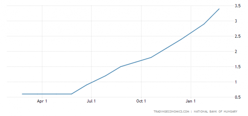 Az MNB kommunikációja megerősítette, hogy a mostani szigorítási folyamatban az alapkamat fokozatosan fel fog zárkózni az egyhetes betéti eszköz következő hónapokban kialakuló kamatszintjéhez. A közlemény szokásos zárása szerint a „Monetáris Tanács a kamatemelési ciklust addig folytatja, ameddig az inflációs kilátások fenntartható módon a jegybanki célon stabilizálódnak, és az inflációs kockázatok a monetáris politika időhorizontján újra kiegyensúlyozottá válnak.”