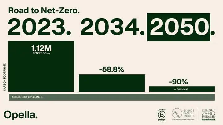 A 2023-as bázisévhez képest az Opella 2034-re vállalja az 1., 2. és 3. kibocsátási körbe tartozó szén-dioxid-kibocsátás 58,8%-os csökkentését. A vállalat továbbá elkötelezett az iránt, hogy 2050-ig 90%-kal csökkenti az abszolút kibocsátását. A célok vonatkoznak úgy a vállalat saját működésére, mint a teljes értékláncára, valamint elsőbbséget fognak élvezni az átfogó dekarbonizációs törekvések a karbon-kompenzációra épülő megközelítéssel szemben.
