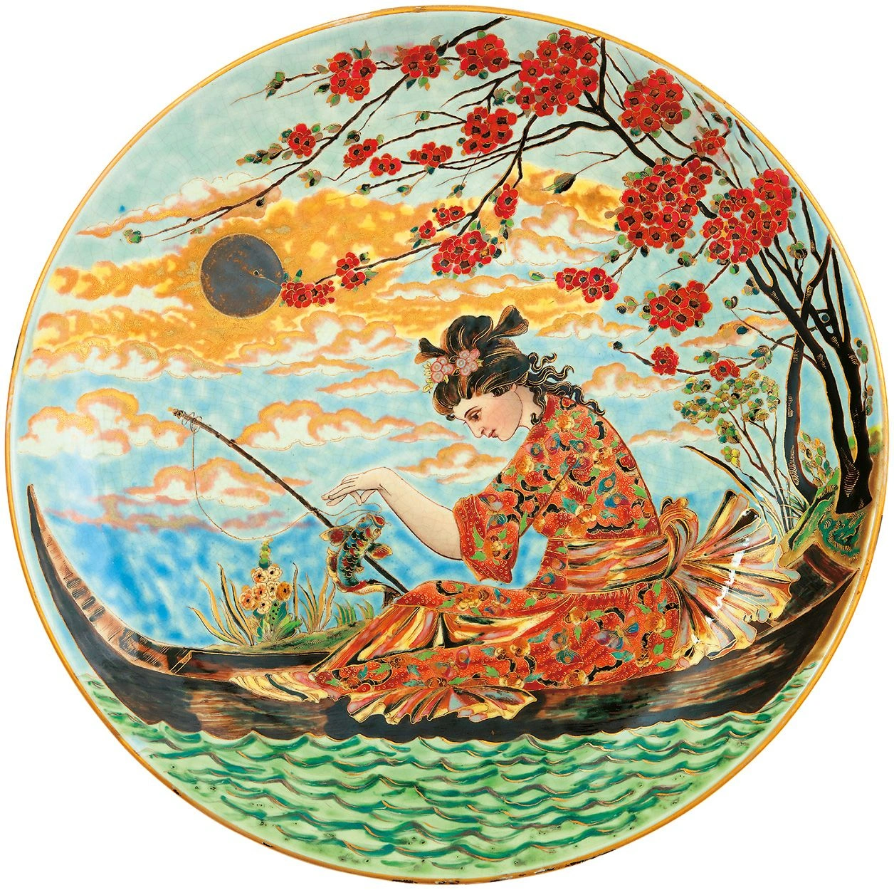 Ugyancsak kivételes ritkaság az a tál, amelyet Zsolnay Júlia, a manufaktúra hírnevét megalapozó Zsolnay Vilmos lánya tervezett. Júlia a gyár egyik legtehetségesebb művésze volt, ez a tál pedig a historizáló stílus csúcsdarabja. Az 1889-ből származó, halászó japán hölgyet ábrázoló, egyedi kerámia értékét a rendkívüli technikával megalkotott díszei adják. A tál kikiáltási ára 3 millió forint.