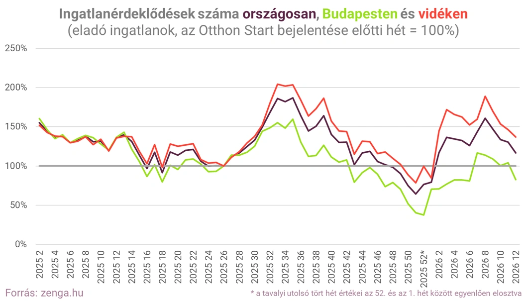 Az ingatlanok állapota szerinti preferenciák megoszlanak. A legtöbben jó állapotú lakásokat keresnek, de a felújítandó, az átlagos állapotú és a már felújított ingatlanok iránti érdeklődés is közel azonos arányt mutat. Érdekes módon az újszerű és új építésű ingatlanok iránt valamivel alacsonyabb a kereslet, bár ez részben a korlátozott kínálattal is magyarázható. Az új építésű projektek kínálatában ugyanakkor már látható a bővülés, ami a következő hónapokban változást hozhat ebben. Összességében tehát az év eleji fellendülés megtörni látszik, de az Otthon Start program a vidéki piacnak még mindig adhat egy lendületet.