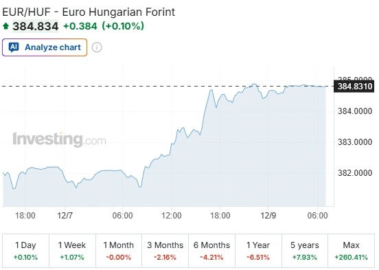 A forint az év eleje óta az euróval szemben 6,5 százalékkal, a dollár ellenében 16,9 százalékkal, a svájci frank ellenében pedig 6,5 százalékkal erősödött.