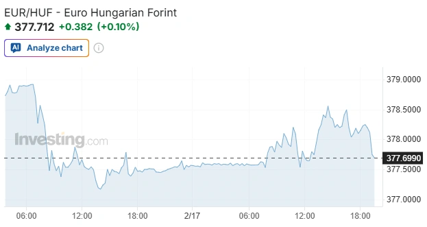 Az eurót este hat órakor 378,18 forinton jegyezték a kora reggeli 377,57 forint után, a dollár jegyzése 319,55 forintra ment fel 318,76 forintról, a svájci franké pedig 414,08 forintra csökkent 414,50-ről.