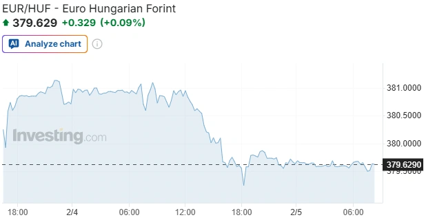 Az euró forint árfolyama hét órakor 379,59 forinton állt, alacsonyabban a szerda esti 379,65 forintnál. A dollár jegyzése 321,83 forintról 321,97 forintra emelkedett, a svájci franké pedig 414,11 forintról 413,72 forintra csökkent.