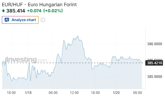 Az eurót 385,47 forinton jegyezték hét órakor, magasabban a hétfő esti 385,32 forintnál. A dollár jegyzése 330,99 forintról 330,53 forintra csökkent, a svájci franké pedig 415,02 forintról 415,03 forintra változott.