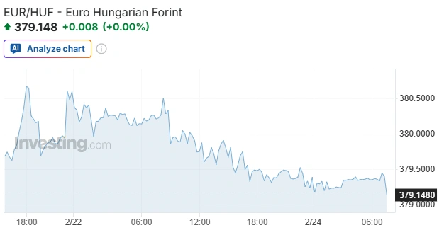 Az eurót 379,36 forinton jegyezték hét órakor, alacsonyabban a hétfő esti 379,45 forint után. A dollár jegyzése 321,44 forintról 322,08 forintra emelkedett, a svájci franké viszont 415,58 forintról 415,17 forintra süllyedt.
