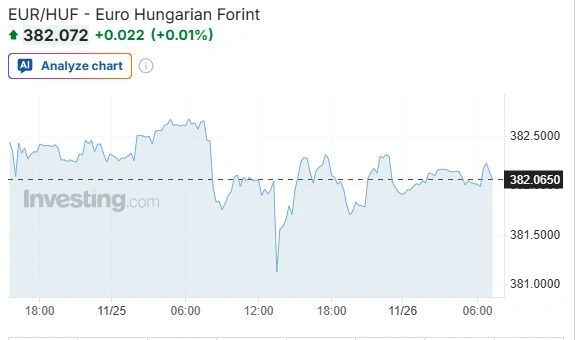 Az euró 7 órakor 382,22 forinton állt, alacsonyabban a kedd esti 382,31 forintnál. A dollár jegyzése 330,82 forintról 329,78 forintra gyengült, a svájci franké viszont 409,02 forintról 409,95 forintra emelkedett.