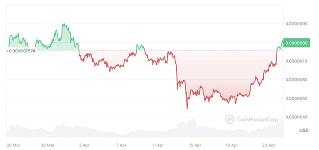Jelenleg 0,000007907 dolláron kereskednek vele, ami ma 15 százalékos, ezen a héten 47 százalékos, ebben a hónapban pedig 4,5 százalékos emelkedést jelent. Jelenleg a Pepe 3,3 milliárd dolláros piaci kapitalizációval és 1,6 milliárd dolláros 24 órás kereskedési volumennel rendelkezik, ami ma 62 százalékos növekedést jelent.