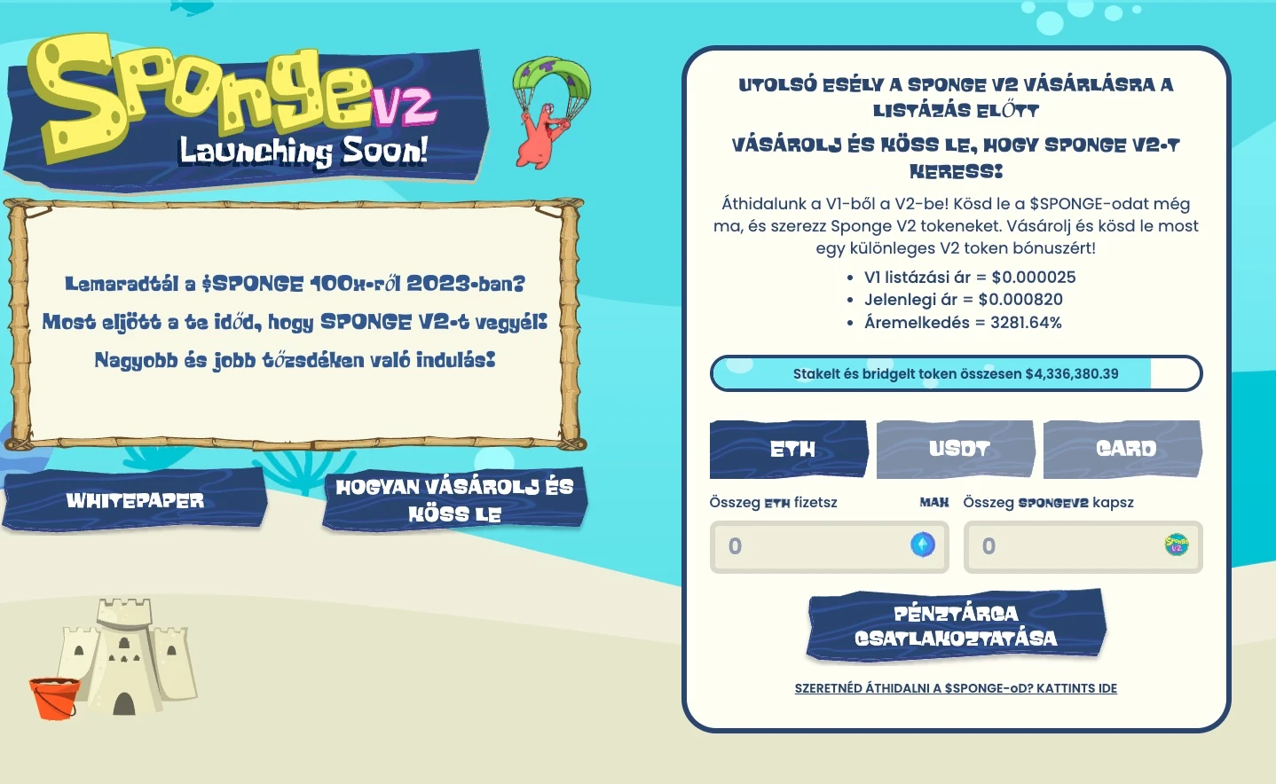A teljes ökoszisztéma alapjaiban véve fog megújulni. A folyamat első részeként hamarosan elérhetővé fognak válni a SPONGEV2 tokenek, amelyek segítségével ismét lehetőség nyílik a 100-szoros hozam elérésre.