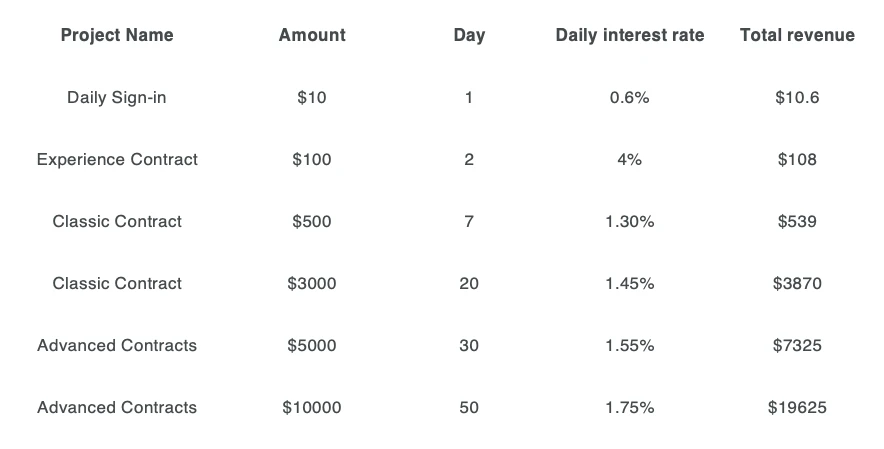 2. Válassz szerződést: Válaszd ki az egyik legjövedelmezőbb bányászati szerződést, és kezdj el felhőbányászni.