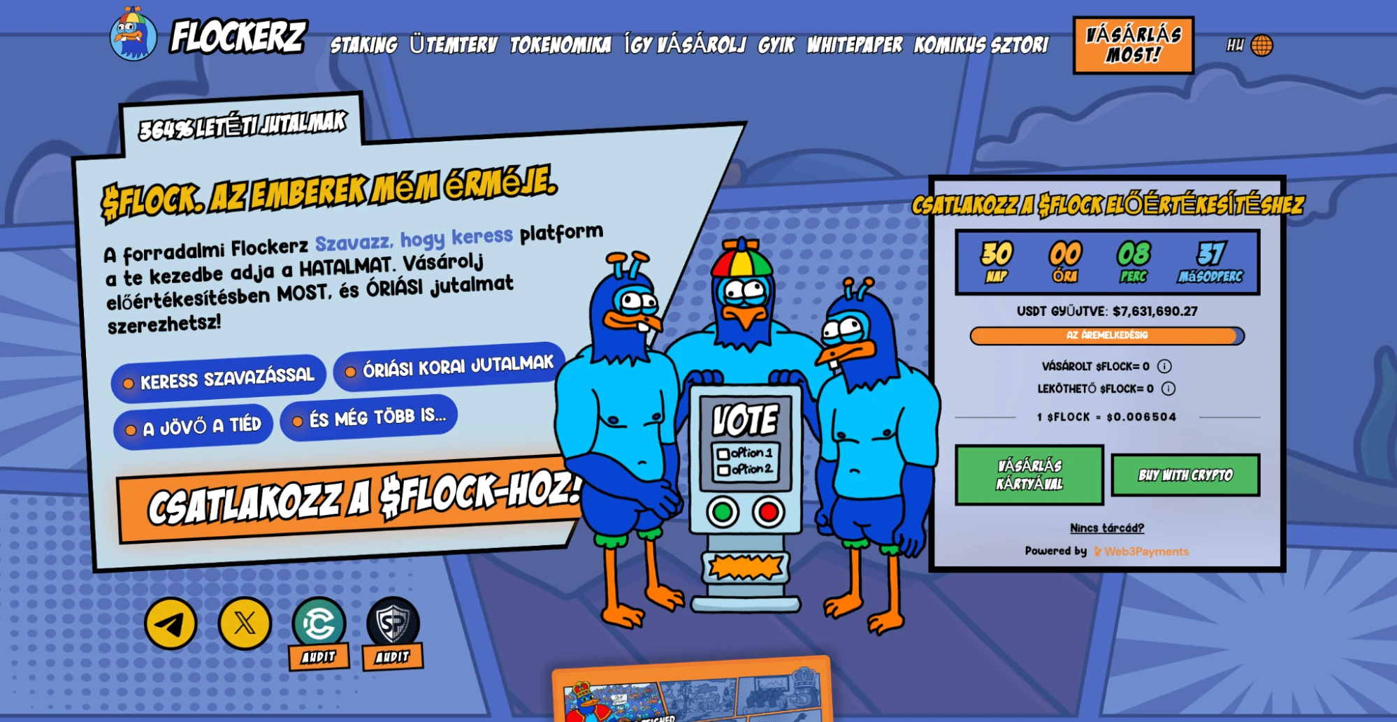 A Flockerz előértékesítése 2024 szeptemberében indult, és három hónap alatt több mint 7,6 millió dollárt gyűjtött össze. A FLOCK tokenek jelenlegi ára 0,006504 dollár, de a szakaszos árazási modell miatt az árfolyam folyamatosan emelkedik, így a korai befektetőknek érdemes mielőbb beszállniuk.