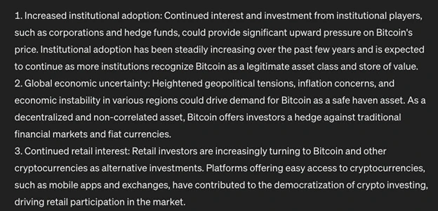 A ChatGPT bullish képet fest a Bitcoin jövőjéről