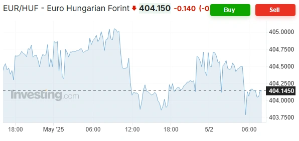 Az eurót péntek reggel hét órakor 404,15 forinton jegyezték a szerda esti 404,55 forint után. A dollár jegyzése 357,50 forintra ment fel 356,44 forintról, a svájci franké pedig 431,30 forintra csökkent 433,23-ról.